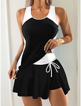 Жен. Купальники Танкини 2 шт. Юбки купальник Кулиска Утягивание живота Завышенная Тонкие Открытая спина Отпуск Одежда для пляжа Сплошной цвет U-образный вырез Без рукавов Купальники