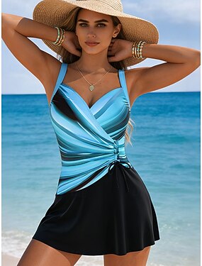 Жен. Купальники Один кусочек Юбки купальник Элегантный стиль Отпуск Графика геометрический V-образный вырез Без рукавов Купальники