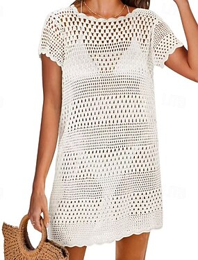 Жен. Купальники Накидка купальник Аппликация Вязаные Отпуск Одежда для пляжа Полотняное плетение Круглый вырез Короткие рукава Купальники