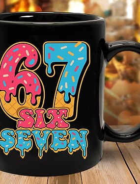 Кружка с мемами 67, забавный подарок, кофейная кружка, яркая, с капающим мороженым, дизайн 67, идеальный сладкий подарок для любителей десертов, друзей или коллег
