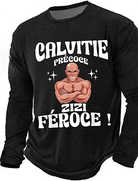 calvitie precoce zizi feroce funny french slogan long sleeve t-shirt mens humorous muscle man graphic tee black retro sarcastic saying tops clothing apparel s m l xl xxl xxxl