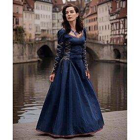 Средневековый Эпоха возрождения Винтажное платье Макси Платья Летучая мышь Королева Викинг Сплошной цвет Квадратный вырез Маскарадный костюм Жен. Королевский Хэллоуин Карнавал Маскарад
