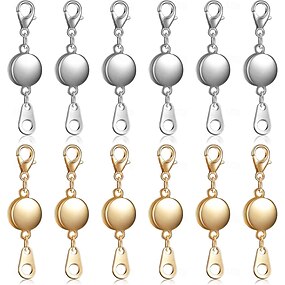 Набор из 12 магнитных застежек для ожерелий. Удлинитель для украшений с сильным магнитом. Магнитная застежка для изготовления украшений, ожерелий и браслетов. Золотое и серебряное покрытие.