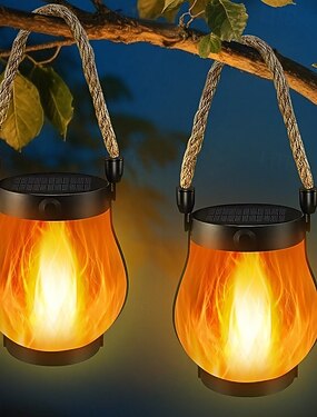 Солнечные LED-лампы с огнем Рождественские висячие фонарики уличные водонепроницаемые садовые и кемпинговые огни ландшафтное освещение для домашнего двора