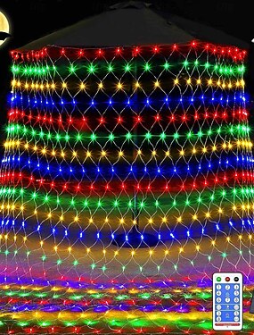 1 упаковка солнечной сетчатой лампы с дистанционным управлением и восемью функциями для украшения помещений и улицы на Рождество, Хэллоуин, свадьбу и праздничные дни 1,5 * 1,5 м - 96 светодиодов / 3 *