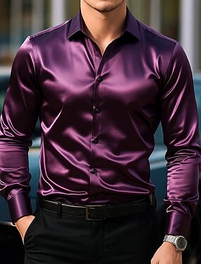 Муж. Рубашка Атласная рубашка Повседневная рубашка Кнопка рубашка Выпускная рубашка Полотняное плетение Свадьба Для вечеринок Синий Лиловый Длинный рукав Лацкан Весна & осень Все сезоны Одежда Пайетки