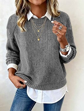 Жен. Вязаная ткань Пуловер Элегантный стиль Мода На каждый день Сплошной цвет Вырез под горло Крупногабаритные Трикотаж Длинный рукав Обычные топы Вязать на открытом воздухе Офис Повседневные