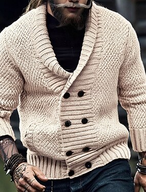 Муж. Кардиган Укороченный свитер Вязаный свитер Рельефный узор Вязать Обычные топы Карман Пуговицы Полотняное плетение Воротник шалевого типа Мода Классика Отпуск На каждый день Одежда Осень Зима