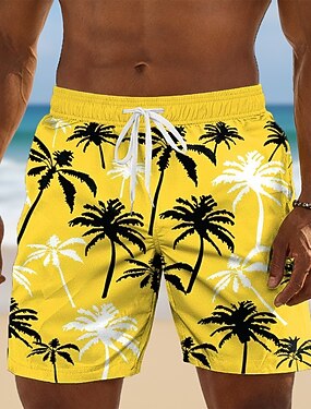 Муж. Кокосовая пальма Тропические растения Обтягивающие длинные шорты Купальные шорты Пляжные шорты Нормальная Гавайский Пляжный отдых Боковые карманы Сетчатая подкладка Эластичный шнурок на талии