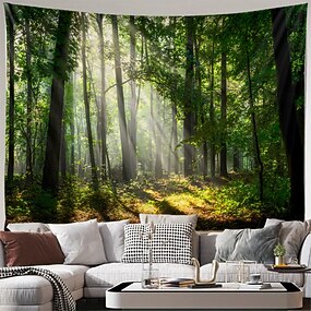природа лес солнечный свет солнечные лучи зеленые деревья туманная лесная местность настенный гобелен для гостиной спальни общежития реалистичный пейзаж настенная фреска