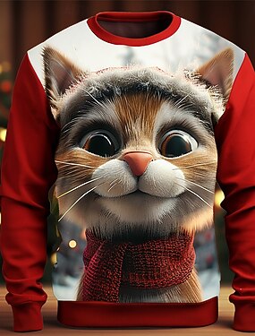 Новогодняя тематика Муж. Кот 3D печать 3D Толстовки Толстовка Толстовка Длинный рукав Толстовка Вырез под горло 3D Веселая 3D печать Рождество Отпуск Для вечеринок Crewneck 3D печать 3D
