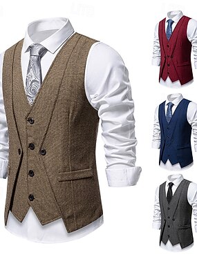 Муж. Жилет из искусственной замши Жилет Отпуск Для вечеринок Бизнес Мода На каждый день Весна Осень Карман Пуговицы Полиэстер Удобный Полотняное плетение Однобортный с 1 пуговицей V-образный вырез