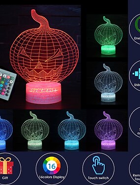 3d тыква ночник иллюзия лампа украшение подарка на хэллоуин для детей 16 цветов с дистанционным управлением для детской спальни с сенсорным экраном 3d иллюзия ночник рождество& тематические