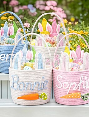 Корзинка в виде пасхального кролика, сделанная своими руками, пустая белая хлопковая веревочная сумка для поиска пасхальных яиц с ушками, многоразовое персонализированное подарочное ведерко для детей, малышей, девочек и мальчиков (пустое для самостоятельн
