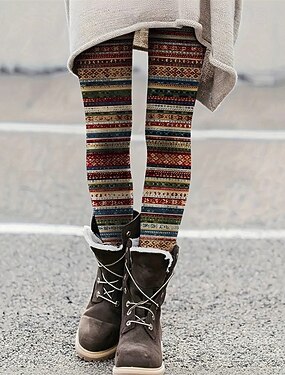 Жен. Брюки Леггинсы Уютные леггинсы Винтаж Этнический стиль Полная длина Завышенная Полоски Эластичная талия С принтом Воздухопроницаемость Удобный Эластичная Отпуск Для улицы На каждый день