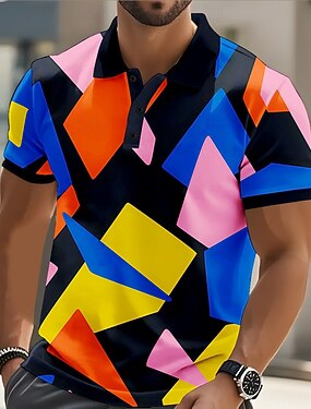Муж. Геометрический принт Рубашки поло Рубашка для гольфа С короткими рукавами Футболки поло Рубашки с воротником Деловая одежда Рабочая одежда Официальная одежда Праздничная одежда Пуговицы 3D печать