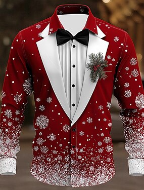 Новогодняя тематика Муж. В снежинку Новогодние костюмы Рубашка-смокинг с принтом в виде галстука Рубашка Кнопка рубашка Длинный рукав Веселая на открытом воздухе Праздники Весна Осень Отложной 3D