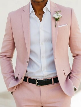 Мужской Смокинги Льняные костюмы Весенняя свадьба Повседневные Белый Розовый Весна лето Костюм Лацкан с тупым углом Мода Для вечеринки Однотонный Узкий крой Набор из 2 предметов Однобортный с 2