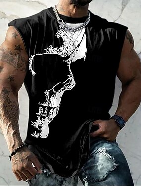 Мужская футболка без рукавов с абстрактным изображением черепа, потертостями, в стиле гранж, дерзкая уличная одежда, майка с графическим принтом, круглый вырез, облегающий крой, для спортзала, летняя,