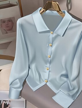 Жен. Рубашка Рубашка на пуговицах Повседневная рубашка Пуговицы Полотняное плетение Стиль Классика Современное Длинный рукав Рубашечный воротник Обычные топы Повседневные Праздники На выход