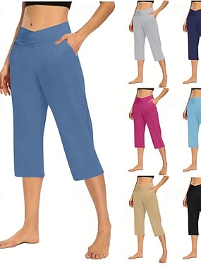 Жен. Чино Отпуск Уличный стиль На каждый день До щиколотки Нормальная Полотняное плетение Карман Эластичный пояс удобный Эластичная Повседневные на открытом воздухе Йога