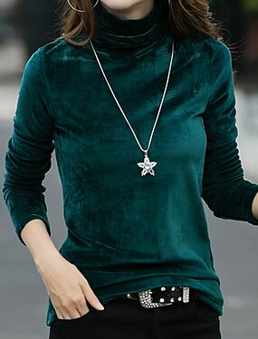 Жен. Бархат Elegant Нарядный Блуза Сплошной цвет Полотняное плетение Элегантный стиль Повседневные Стиль Длинный рукав Хомут Обычные топы Повседневные Праздники На выход