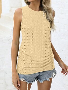 Жен. Безрукавка Нарядные Топы Футболка ушко Пуговицы Сплошной цвет Винтаж Мода На каждый день Без рукавов Вырез под горло Обычные топы Повседневные На выход выходные
