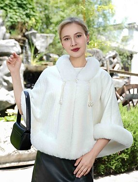 Меховые накидки Элегантный стиль На каждый день Рукав до локтя Летучая мышь Полиэстер Свадебные накидки С С кисточками Назначение Особые случаи Наступила зима