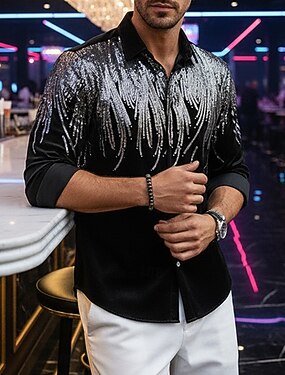 Муж. Рубашка Выпускная рубашка Диско Рубашка Бархатная рубашка Черный Длинный рукав Крылья Лацкан Повседневные Отпуск Пайетки Одежда Мода На каждый день модный Удобный