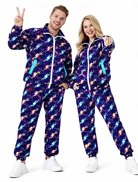 Хиппи В стиле 1980-х Уличный стиль Брюки Инвентарь Жакет Длинные рукава Диско Геометрический принт Маскарадный костюм Универсальные Карнавальный костюм Маскарад