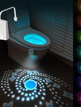 Светильник для унитаза с датчиком движения, 16 цветами подсветки и проекцией звезд, перезаряжаемый светодиодный ночник для ванной комнаты, забавный подарок для женщин, мужчин, девочек и мальчиков.