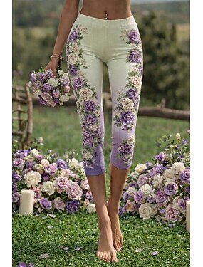 Леггинсы для женщин капри высокая эластичность отпуск винтажная мода длина до икры средняя талия цветочный графический принт воздухопроницаемые мягкие отпуск повседневные голубая яичная скорлупа