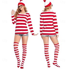 Карнавальный костюм 2026 г. Больше аксессуаров Необычные костюмы Уолли Белый и красный Полоски Взрослые Жен. Хэллоуин Карнавал Для вечеринок Выступление Одеваемся