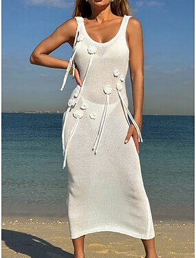 Жен. Купальники Накидка Купальное платье купальник Отпуск Одежда для пляжа Сплошной цвет U-образный вырез Без рукавов Купальники