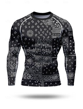 Муж. Геометрический принт Компрессионная футболка Футболка для бега Весна Осень Пэчворк 3D печать Длинный рукав Быстровысыхающий Сжатие видеоизображений Для тренировки Power Flex
