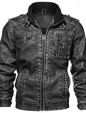 Муж. Куртка Кожаные куртки Повседневная куртка Байкерская куртка Мотоциклетная куртка Сохраняет тепло Дожденепроницаемый Дышащий Повседневные На выход Молния Воротник-стойка Уличный стиль Пиджак