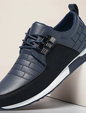 Мужские темно-синие эластичные кроссовки на шнуровке – дышащая спортивная обувь для деловых повседневных образов, поездок на работу и прогулок по городу