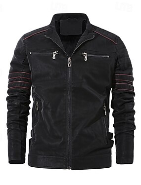 Муж. Куртка Кожаные куртки Повседневная куртка Байкерская куртка Мотоциклетная куртка Сохраняет тепло Дожденепроницаемый Дышащий Повседневные На выход Молния Воротник-стойка Уличный стиль Пиджак
