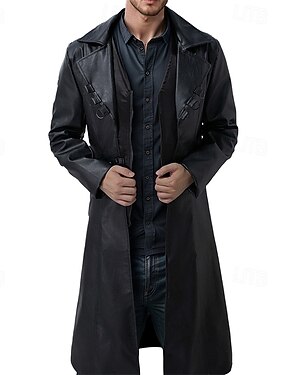 Муж. Пальто Тренч Длинный тренч Отпуск Повседневные Осень Зима Искусственная кожа С защитой от ветра Верхняя одежда Одежда Мода Классика Полотняное плетение Карман Лацкан Однобортный крой