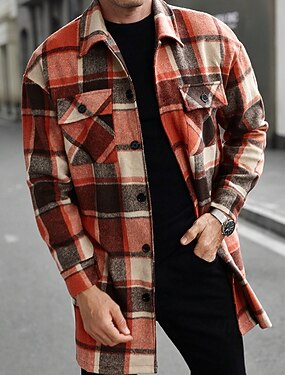 Муж. Легкая куртка Куртка-рубашка Повседневная куртка Шакет Отпуск Повседневные Сохраняет тепло Карман Весна Осень В клетку Мода Классика Лацкан Обычная