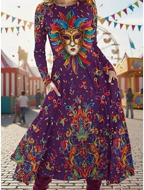 Жен. Платье средней длины Повседневное платье Платье в стиле 50-х годов Элегантный стиль Мода Повседневные на открытом воздухе выходные Стандартный Графика Длинный рукав Вырез под горло