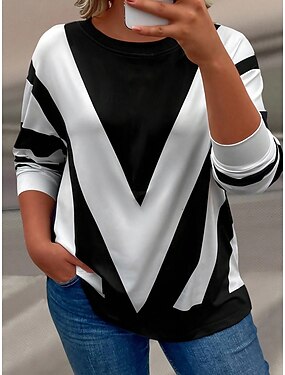 Жен. Большие размеры Верхушки Пуловер Толстовка Контрастных цветов С принтом Длинный рукав Вырез под горло На каждый день Повседневные Полиэстер Осень Зима Черный Коричневый