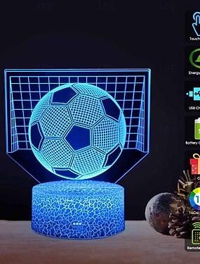 Ночник для детей в футбольном стиле, лампа с 3D-эффектом, 16 цветов, регулировка яркости, прикроватная лампа с пультом дистанционного управления. &сенсорный экран, идея подарка на день рождения или