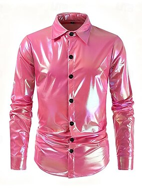 Ретро В стиле 1980-х Рубашка Диско Патент на блестящий латекс Металлик Маскарадный костюм Муж. Хэллоуин Карнавал Парад гордости Месяц гордости Взрослые Рубашка Лето