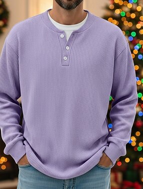 Муж. Вафельная рубашка Henley Футболки Длинный рукав Сплошной цвет Полотняное плетение Текстура Мода Оригинальный рисунок На каждый день Рукав «реглан» Хенли на открытом воздухе Повседневные
