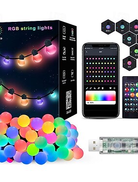 Уличные гирлянды, диммируемые лампочки, светодиодные бусины, RGB-светильники для патио с пультом дистанционного управления, водонепроницаемые, ударопрочные гирлянды со степенью защиты IP65, меняющие