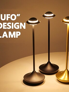 Креативная настольная лампа в форме НЛО из металла с аккумулятором, трехцветной сенсорной регулировкой яркости для столовой, бара, гостиной, кабинета, спальни, освещения у кровати, зарядка через USB,