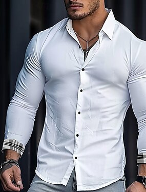 Муж. В клетку Рубашка Повседневная рубашка Кнопка рубашка Длинный рукав Деловая одежда Официальные Бизнес Повседневные Весна Осень Отложной Кнопка вверх Белый