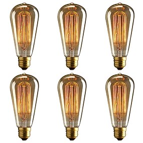 6 шт. 40 Вт Эдисон винтажная лампа накаливания с регулируемой яркостью e26 e27 st64 канделябры накаливания янтарный теплый белый для светильника 220 В 110 В