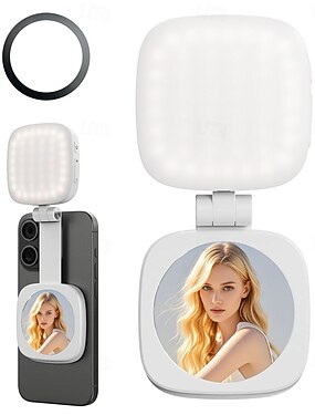 Миниатюрный портативный магнитный светильник для телефона со складным зеркалом, который можно использовать как подставку для телефона, многофункциональный светильник для красоты и фотосъемки, доступен